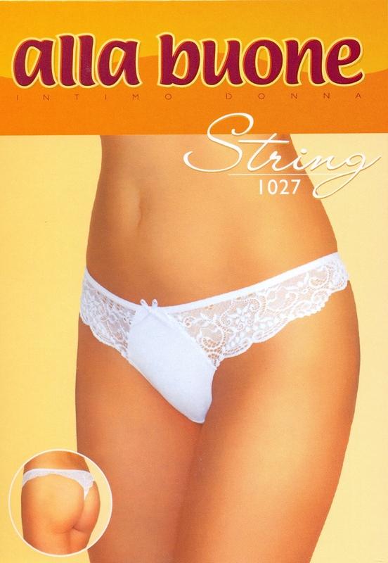 Описание: Стринги женские однотонные, с декоративной резинкой по поясу, по бокам и сзади кружево.