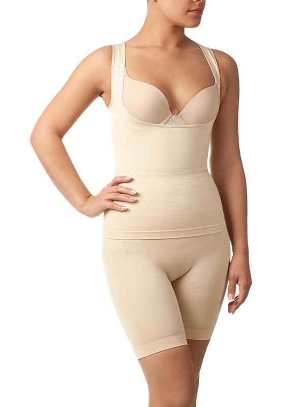 Описание: Комплект майка + шорты с сильным корректирующим эффектом предназначен для повседневной внутренней носки в сочетании с любой повседневной одеждой и занятий спортом. Комбинированное плетение полотна, эластичная тонкая дышащая ткань обеспечивают поддержку мышц спины для правильной осанки, подтягивание живота, создание «Бразильского эффекта» и формируют линию бедер.