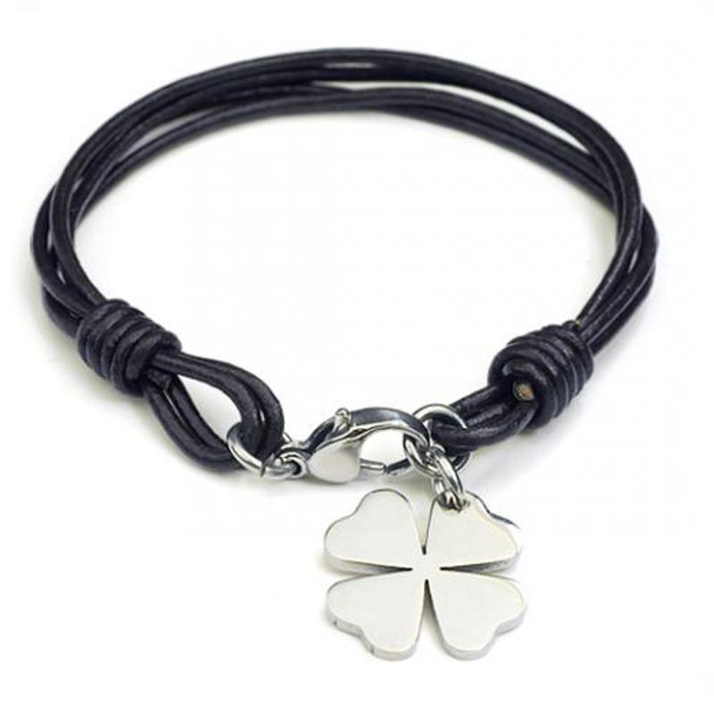 Описание: Браслет мужской кожаный, с декоративной подвеской "Клевер".