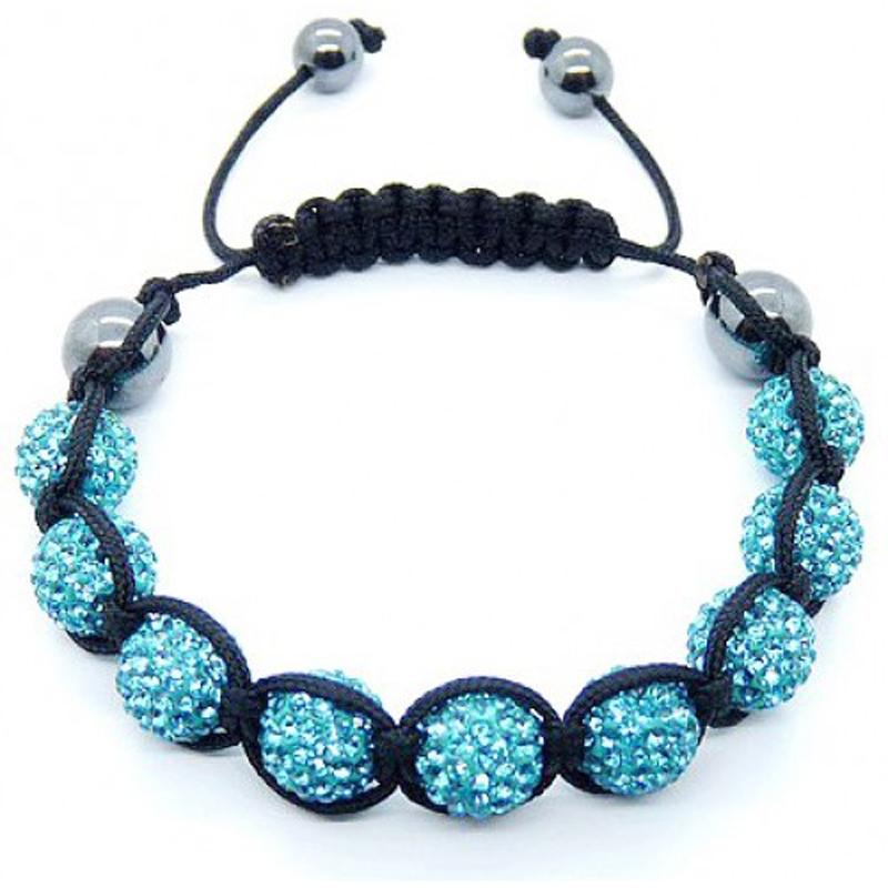 Описание: Плетёный браслет из голубых шаров с кристаллами