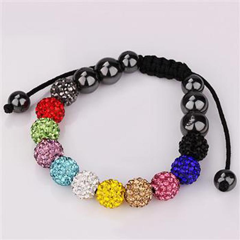 Описание: Плетёный браслет из разноцветных шаров с кристаллами.