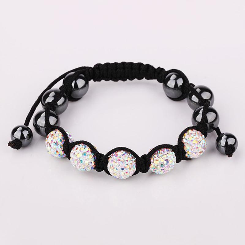 Описание: Плетёный браслет из белых шаров с кристаллами и серых глянцевых шаров в переплете.