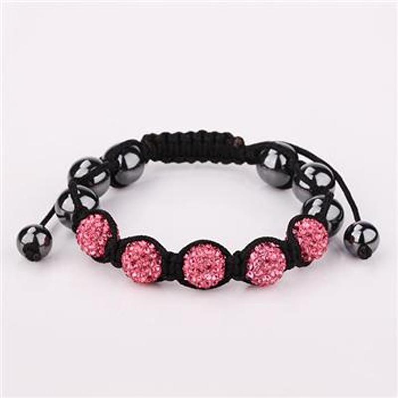 Описание: Плетёный браслет из розовых шаров с кристаллами и серых глянцевых шаров в переплете.