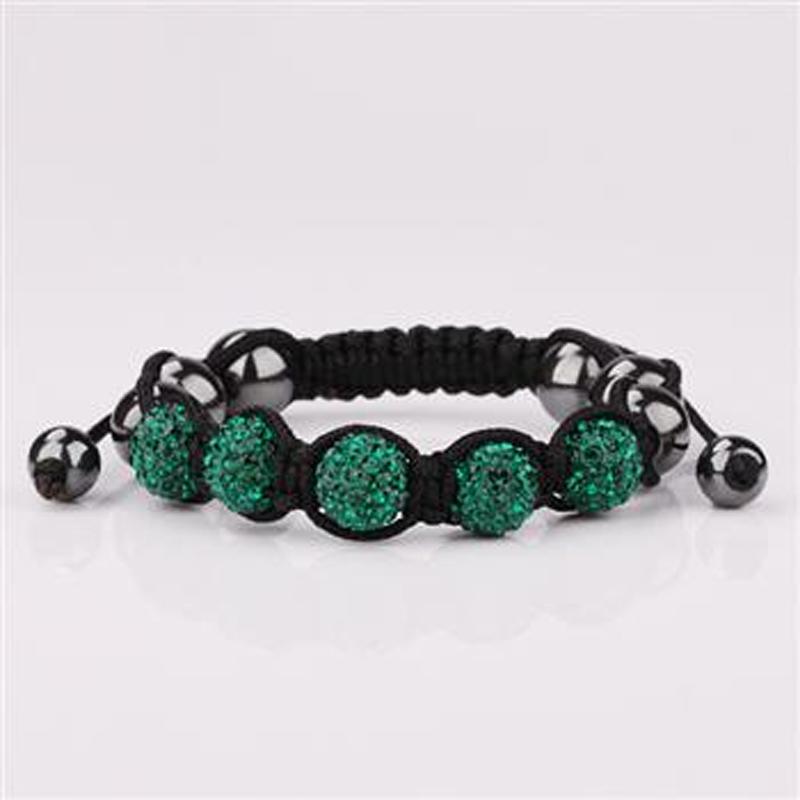 Описание: Плетёный браслет из темно-зеленых шаров с кристаллами и серых глянцевых шаров в переплете.