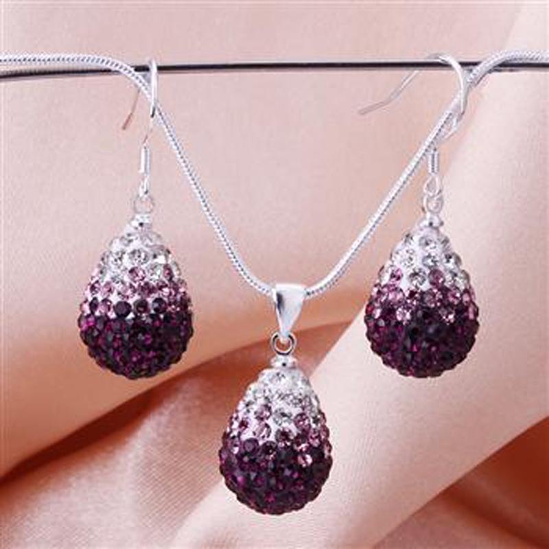 Описание: Комплект бижутерии "Ежевичная капля в кристаллах". В комплект входят: серьги и подвеска на цепочке.