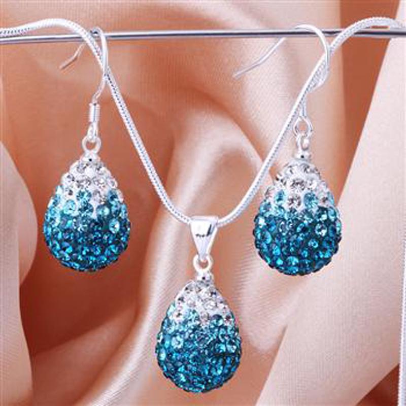 Описание: Комплект бижутерии "Голубая капля в кристаллах". В комплект входят: серьги и подвеска на цепочке.