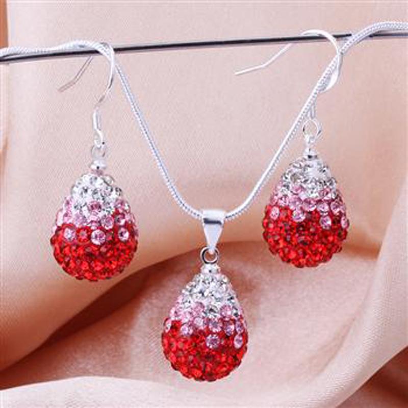 Описание: Комплект бижутерии "Красная капля в кристаллах". В комплект входят: серьги и подвеска на цепочке.