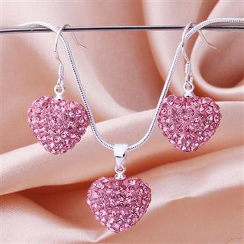 Описание: Комплект бижутерии "Розовое сердце". Комплект украшен стразами. В комплект входят: серьги и подвеска на цепочке.