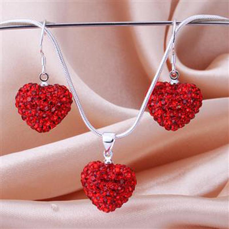 Описание: Комплект бижутерии "Алое сердце". Комплект украшен стразами. В комплект входят: серьги и подвеска на цепочке.