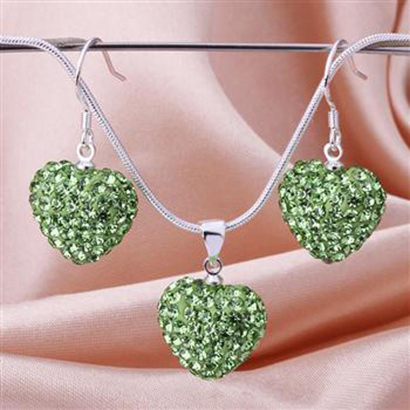 Описание: Комплект бижутерии "Зеленое сердце". Комплект украшен стразами. В комплект входят: серьги и подвеска на цепочке.