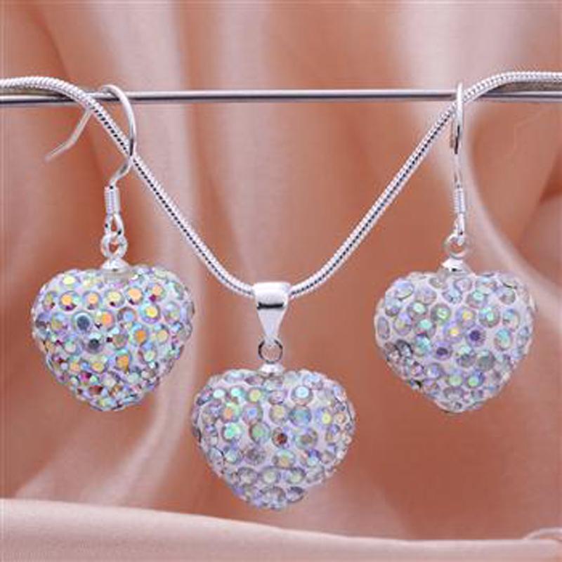Описание: Комплект бижутерии "Белое сердце в кристаллах". Комплект украшен перламутровыми стразами. В комплект входят: серьги и подвеска на цепочке.