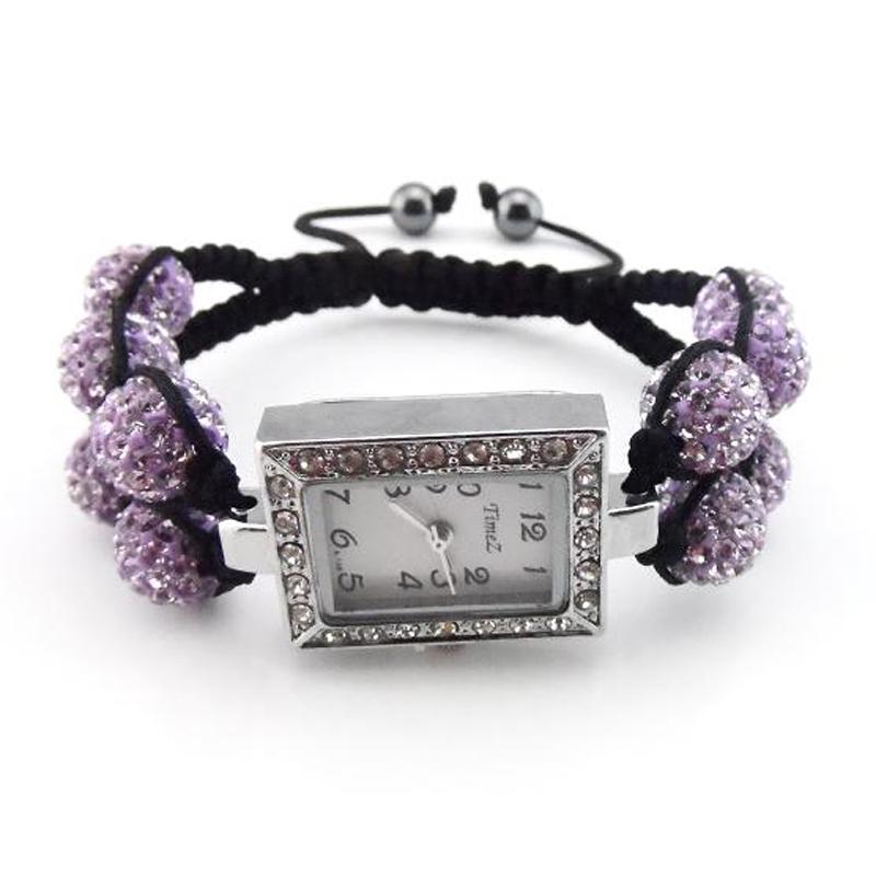 Описание: Браслет с часами Shamballa, украшенный шариками с кристаллами. Часы декорированы стразами. Изысканное и оригинальное украшение.
