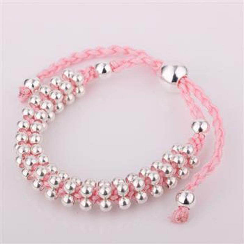 Описание: Плетёный браслет из бусинок и розового шнурка.