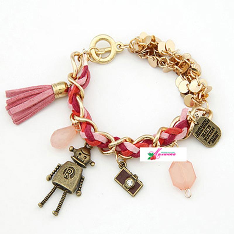 Описание: Браслет "Робот" комбинированный из декоративных бусин, оригинальных подвесок со стразами. Стильный и необычный аксессуар.